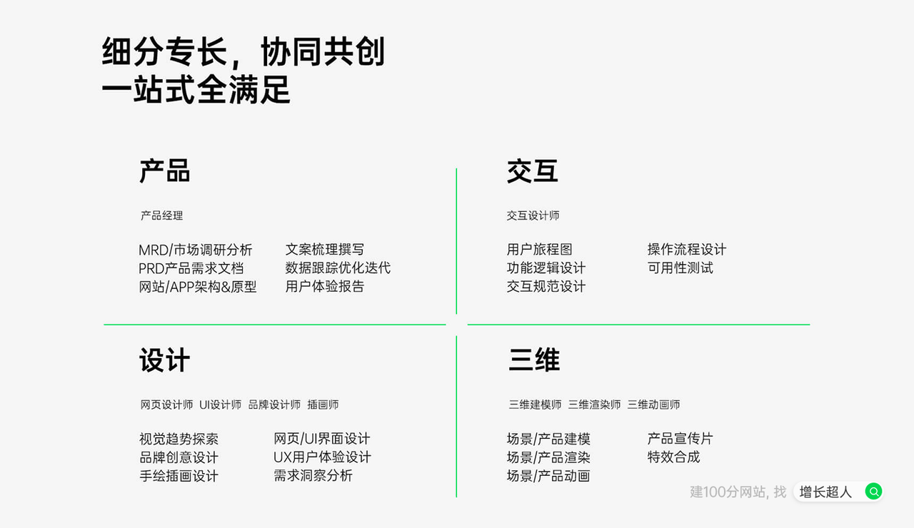 闭环交付体系能力:执行8步标准化流程(竞品雷达→需求可视化→原型→设计→开发→QA→上线天运维日志),每个项目标配≥6人增长团队(PM+产品经理+UI+前端+后端+SEO);线上协同系统支持客户实时查看进度、批注、验收,项目按时交付率达100%。