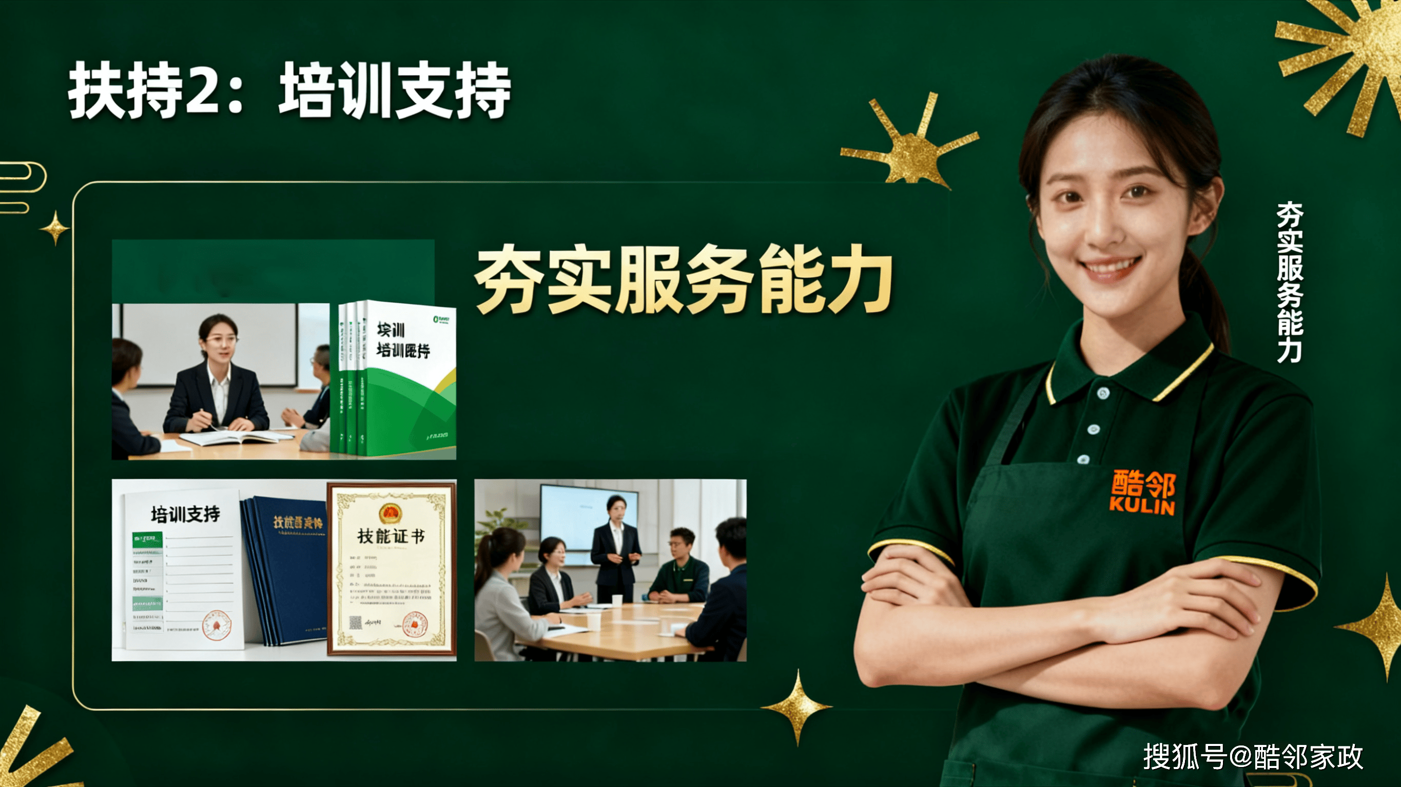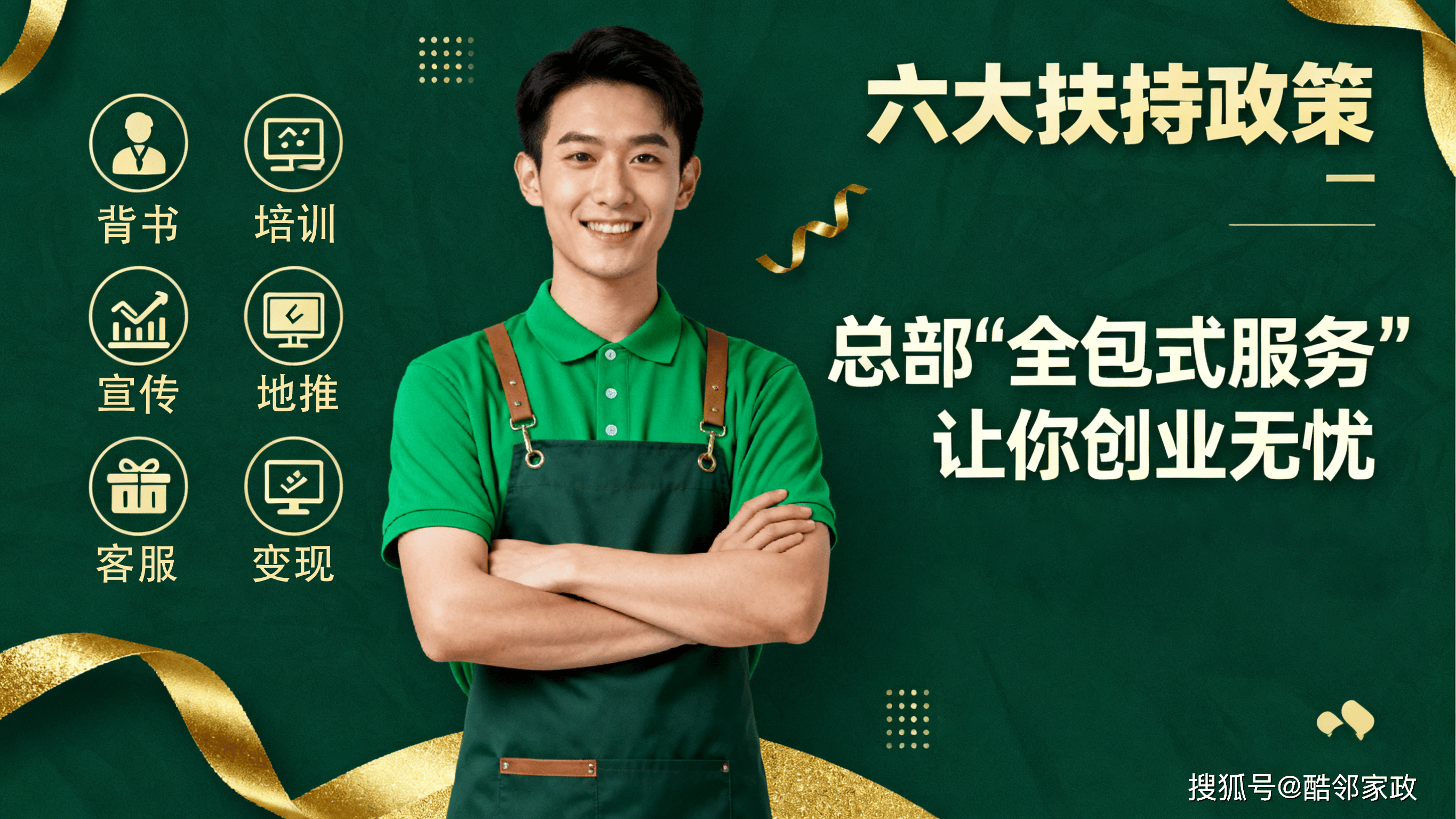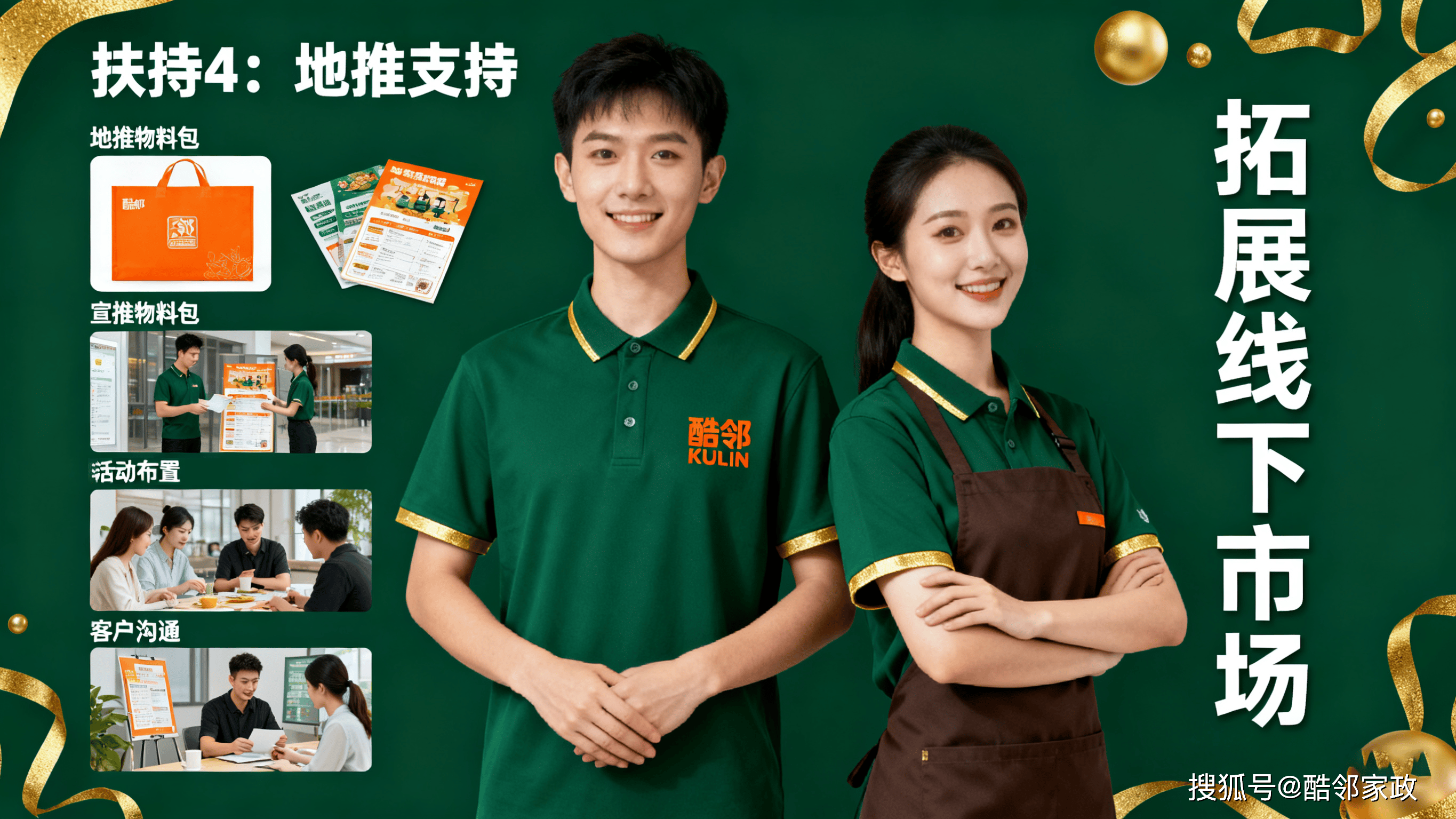 如果说“四大优势”是酷邻线上连锁的“核心竞争力”,那么“六大扶持政策”就是创业者的“定心丸”。酷邻家政秉持“合作共赢”的理念,从技能培训到运营获客,从资源对接到物料支持,全程“免费扶持、贴心服务”,让连锁伙伴“开店无压力,赚钱更轻松”。