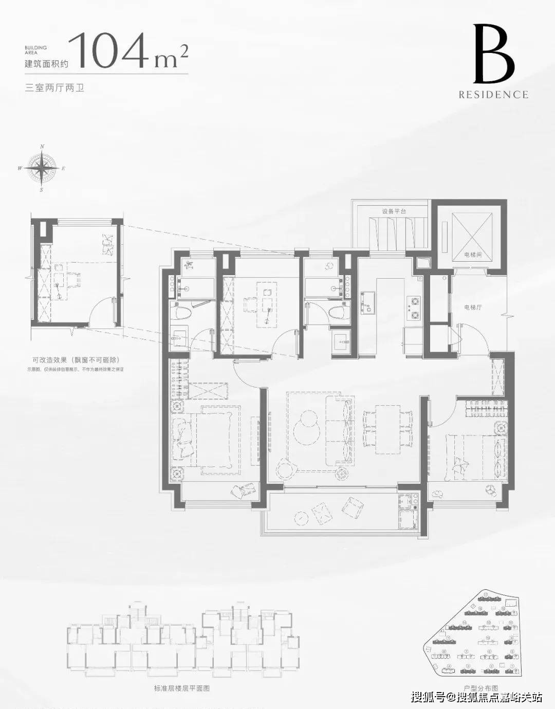 共计规划17栋12-14F小高层,首开楼栋位于整个项目的北侧,共3种户型,分别为建面约96㎡三房两卫、建面约104㎡三房两卫、建面约135㎡四房两卫。3种户型提供了全生命周期成长空间的方案。