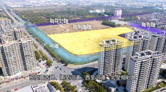 地块四至范围:东至茸吉路,南至河道,西至河道,北至规划路,为普通商品房用地,地块出让面积42480.63㎡,容积率2.3,建筑面积97705.449㎡。